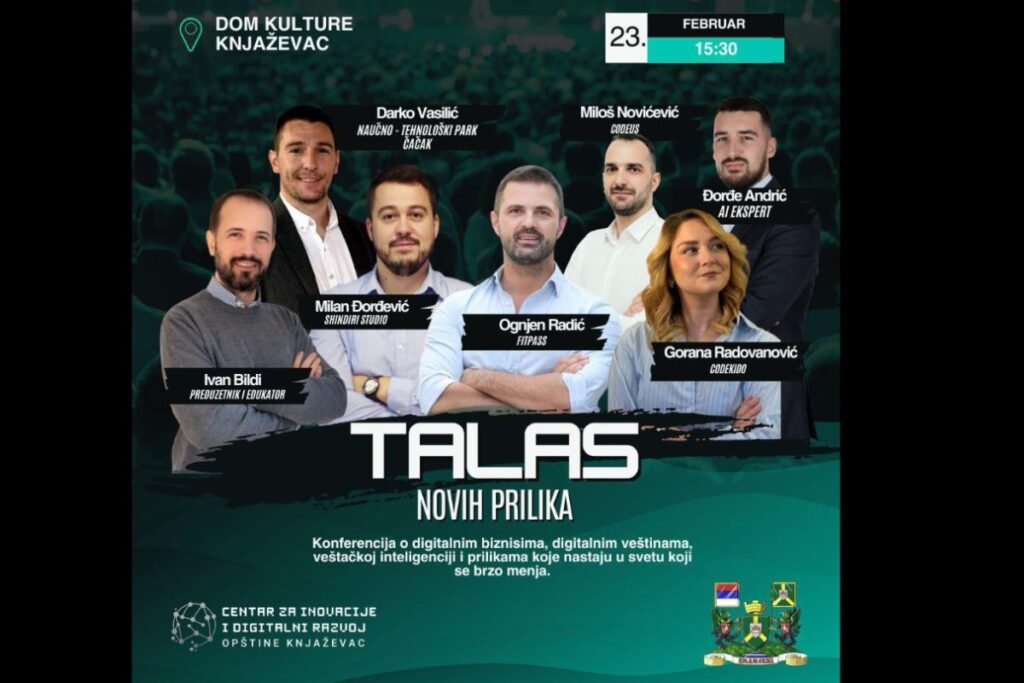 Konferencija „Talas novih prilika“ biće održana 23. februara 2026. godine u sali Doma kulture u Knjaževcu, u organizaciji Centra za inovacije i digitalni razvoj opštine Knjaževac.